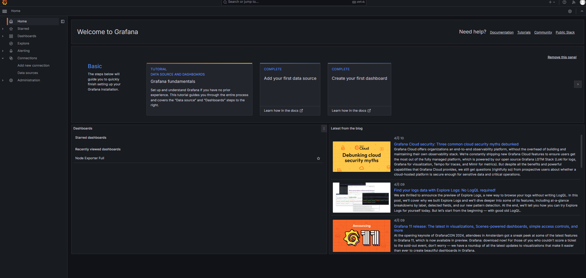 docker run -d -p 3000:3000 --name=grafana grafana/grafana默认: admin/admin 第一次登陆需要修改密码