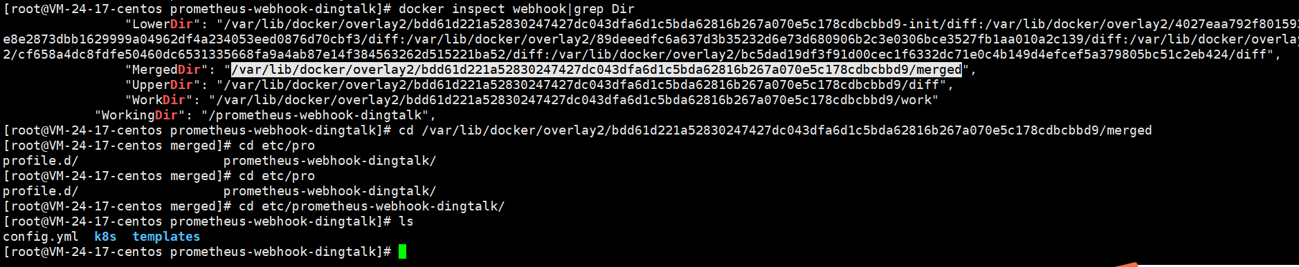 2、进入mergerDir/etc/prometheus-webhook-dingtalk/