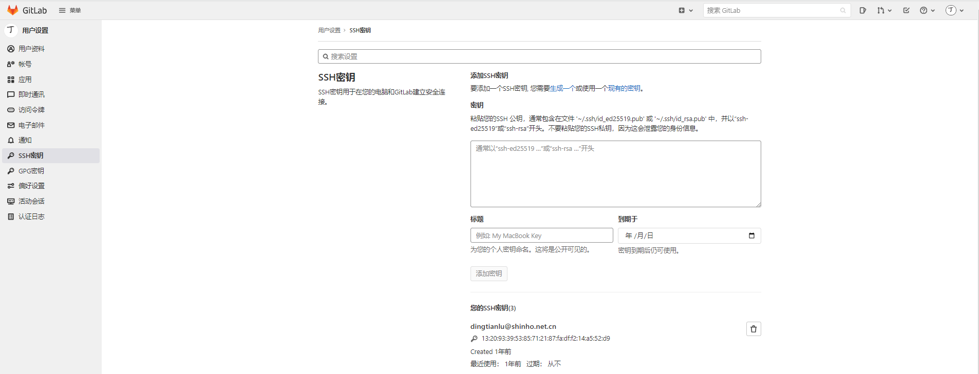 ## # 复制id_rsa.pub 内容到下图gitlab ssh秘钥里